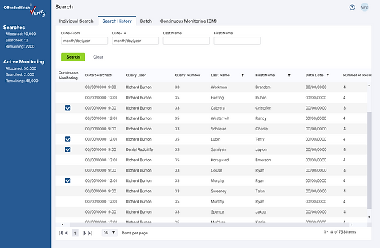 A new market of users was identified to utilize existing databases. The company could provide batch look up for sex offenders. This was identified to be a need for Universities looking to quickly identify this population on their campuses. A new interface was designed to provide search ability, with active count information.